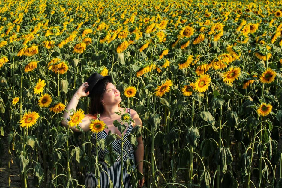 Foto immersa tra i girasoli a La Loggia, in provincia di Torino