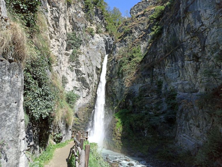 Sempre nel comune di Challant Saint-Victor ci spostiamo verso valle e facciamo una tappa all’imponente Cascata di Issolaz. Una cascata di più di 50 metri mozzafiato, raggiungibile attraverso una ripida scalinata in circa 20 minuti. Scendendo una ripida scalinata giungerete ad un piccolo sentiero dove, ve lo posso assicurare, rimarrete senza parole! Davanti a voi l’acqua si getta per più di 50 metri nel vuoto creando questa incredibile cascata.