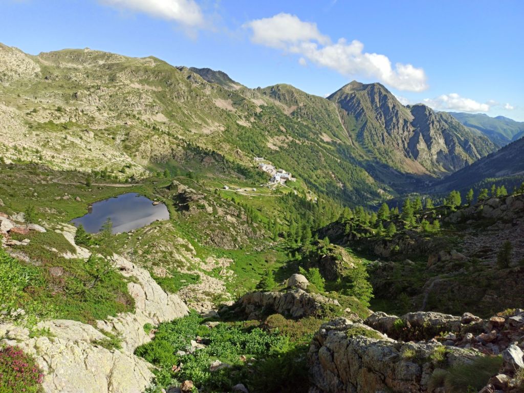 Scendendo a valle, nel tratto tra i laghi principali ed il piccolo lago, in giornate molto limpide, è possibile vedere tra le montagne di fronte a voi il Lago Malinvern.