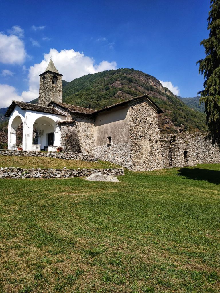 La seconda tappa che vi consiglio a Pont Canavese è la Chiesa di Santa Maria in località Doblazio. Il navigatore tenderà a portarvi fuori strada, quando siete nei paraggi chiedete in giro. Pare che la Chiesa risalga alla metà del XIV secolo, pieve matrice di tutte le chiese delle Valli Orco e Soana, e parrocchia di Pont Canavese già nel 1879. La Chiesa si trova a circa mezz’ora dal centro storico e una leggenda narra che la sua costruzione proprio in questo luogo sia stata voluta da una mula. Piccola e dai colori scuri all’interno, fuori ha una meravigliosa terrazza panoramica, da cui si intravede la valle e gli obbrobri architettonici di cui vi parlavo prima. Ma è nella sua cripta che si nasconde la cosa più inquietante: un ossario, dove sono state raccolte le ossa rinvenute dai vari cunicoli, oggi chiusi perché pericolanti. Sotto questa Chiesa infatti si eseguirono sepolture fino all’Editto Napoleonico che vietò di seppellire i defunti nei centri abitati.