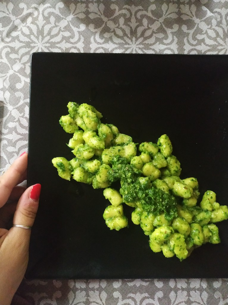 La colazione e la cena sono ispirate alla cucina tradizionale piemontese e di montagna, con un’attenzione particolare ai dolci, che cambiano tutte le sere e sono preparati dalla cucina. Degno di nota il piatto di gnocchi conditi con il pesto di aglio orsino e le mandorle. L’aglio orsino, ci ha raccontato Laura, è una pianta che qui si trova molto facilmente, chiamata così perché ricorda il profumo dell’aglio e conserva le stesse proprietà benefiche, senza però lasciare imbarazzanti conseguenze nel gusto dei commensali; chiamato così perché tra i cibi preferiti dagli orsi che risvegliati dal letargo ne vanno ghiotti e si fiondano velocemente alla sua ricerca.