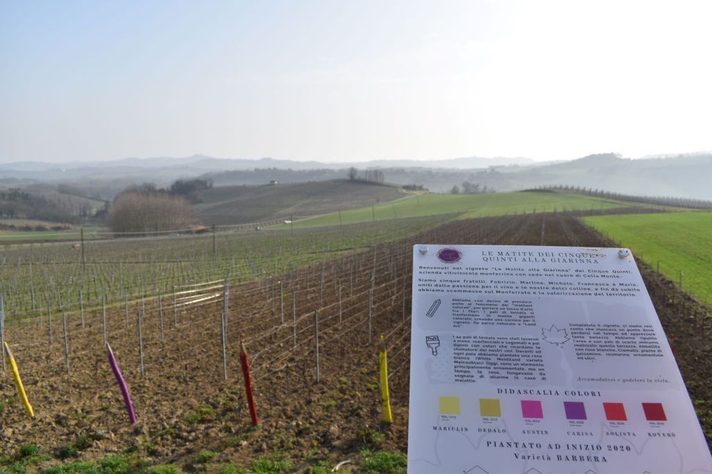 A pochi passi dal borgo è presente una vigna colorata, creata dall’ispirazione della Vigna dei Pastelli di Coazzolo. I pali di testata, che sorreggono i vigneti, si trasformano in matite giganti e colorate. Nel vigneto Le Matite alla Giàrinna dell’azienda vitivinicola I Cinque Quinti, sono presenti 44 matitoni giganti, scortecciati e modellati e colorati delle sfumature dei vini monferrini prodotti dall’azienda; come ad esempio il rosso puro del Solista, un grignolino del Monferrato casalese, il viola erica dell’Austin, lo spumante Brut Rosé, e così via.