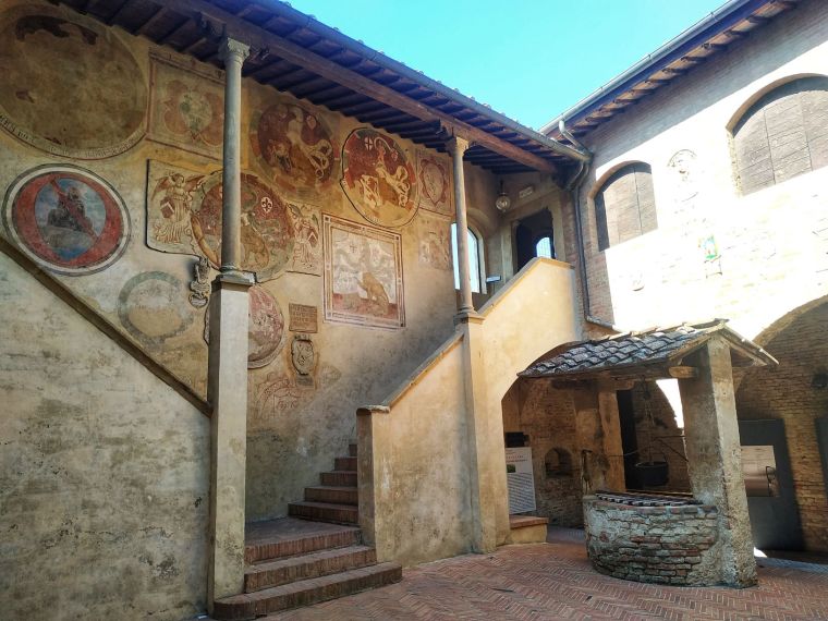 Visitate Palazzo Pretorio o dei Vicari, riconoscibile per i numerosi stemmi sulla facciata e nel cortile interno. Gli stemmi sono in terracotta invetriata, pietra serena, che era il materiale più economico e marmo e rappresentano i vari vicari che hanno abitato il palazzo: un numero ingente a giudicare dal numero di stemmi presenti.