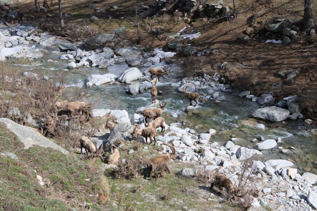 Ma è proprio qui che accade l’impensabile, tra le baite di Chiapili Sopra iniziamo a scorgere un grande branco di stambecchi intenti a bere nel fiume, a brucare l’erba e a strusciarsi tra gli arbusti per liberarsi della lana invernale del loro manto. La perfetta conclusione di una piacevole escursione primaverile.