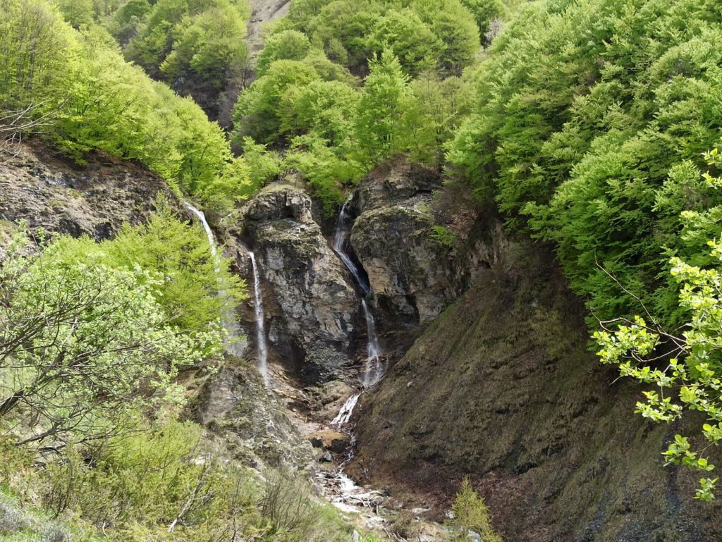 Poi, il sentiero si immerge in una fresca faggeta che vi accompagnerà per una ventina di minuti dandovi refrigerio nelle giornate più calde. Al termine della faggeta vi aspetterà una splendida cascata stagionale, composta da tre magnifici getti d’acqua. Vi consiglio, dopo aver superato il torrente, di fare una brevissima deviazione e salire ai suoi piedi per godere appieno della sua bellezza.