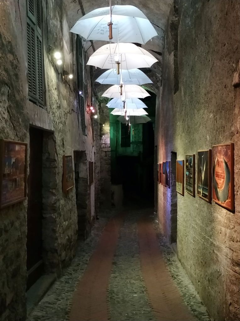 A questo punto vi ritroverete in un labirinto di vicoli in ombra e ripidi carugi, botteghe e negozietti che vendono opere artistiche e prodotti tipici. La camminata sempre in salita, circondati da piante e rampicanti, vi porterà fino al Castello dei Doria.