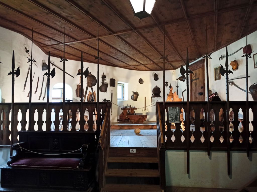 Si passa poi nell’armeria, piccola ma estremamente rifornita tra armature, spade, fucili da caccia per gli ospiti, alabarde e catapulte, utilizzate anche per le prime guerre biologiche.