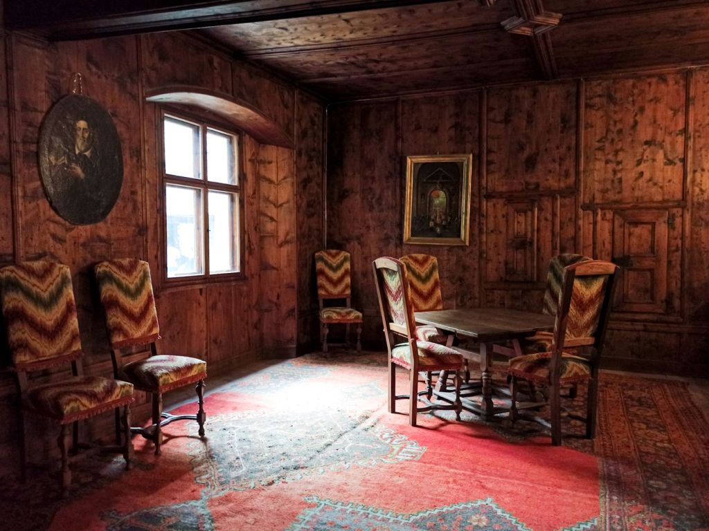 E la stanza del Cardinale Tisseron che, dal Vaticano, è stato ospite dell’abate per un’intera estate al Castello di Taufers e grazie ad una sua generosa donazione venne ricostruita la torre del castello. Riportandola alla sua altezza originale di 42 metri.