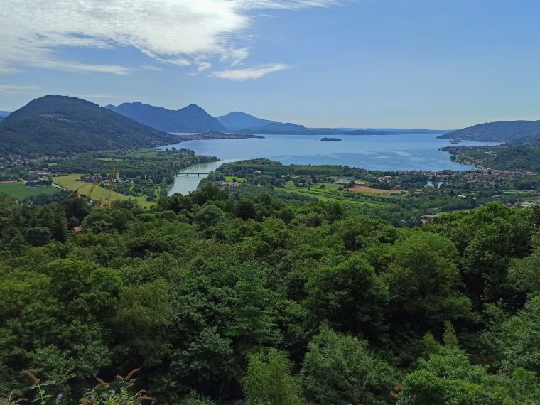 In meno di un quarto d’ora raggiungerete il primo balcone naturale che si affaccia sul Lago Maggiore, prendetevi un attimo per ammirare questo spettacolo, per poi tuffarvi nuovamente nel bosco.
