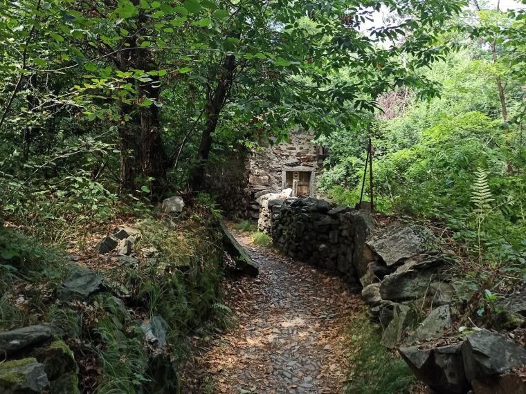 Il sentiero è un’ampia mulattiera, probabilmente un tempo l’unica via di comunicazione tra i due borghi. Inizia con una breve discesa, immergendosi poco a poco all’ombra dei boschi, per poi continuare in piano, a mezza costa, tra ponticelli e fonti. Pochi metri sotto la mulattiera è presente la linea ferroviaria funzionante, che noterete solo per via del passaggio dei treni che tutt’ora collegano Mergozzo a Verbania-Pallanza.