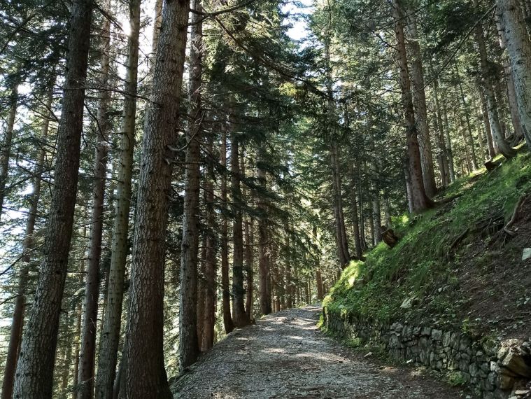 Imboccate la strada militare, attraversando il ponte, che dal parcheggio si trova alla vostra sinistra. Il percorso inizia leggermente in discesa per poi risalire. Al primo bivio tenete la destra e continuate proseguendo sull’ampia strada militare che si inoltra nell’ombrosa pineta, questo tratto dura circa tre quarti d’ora.