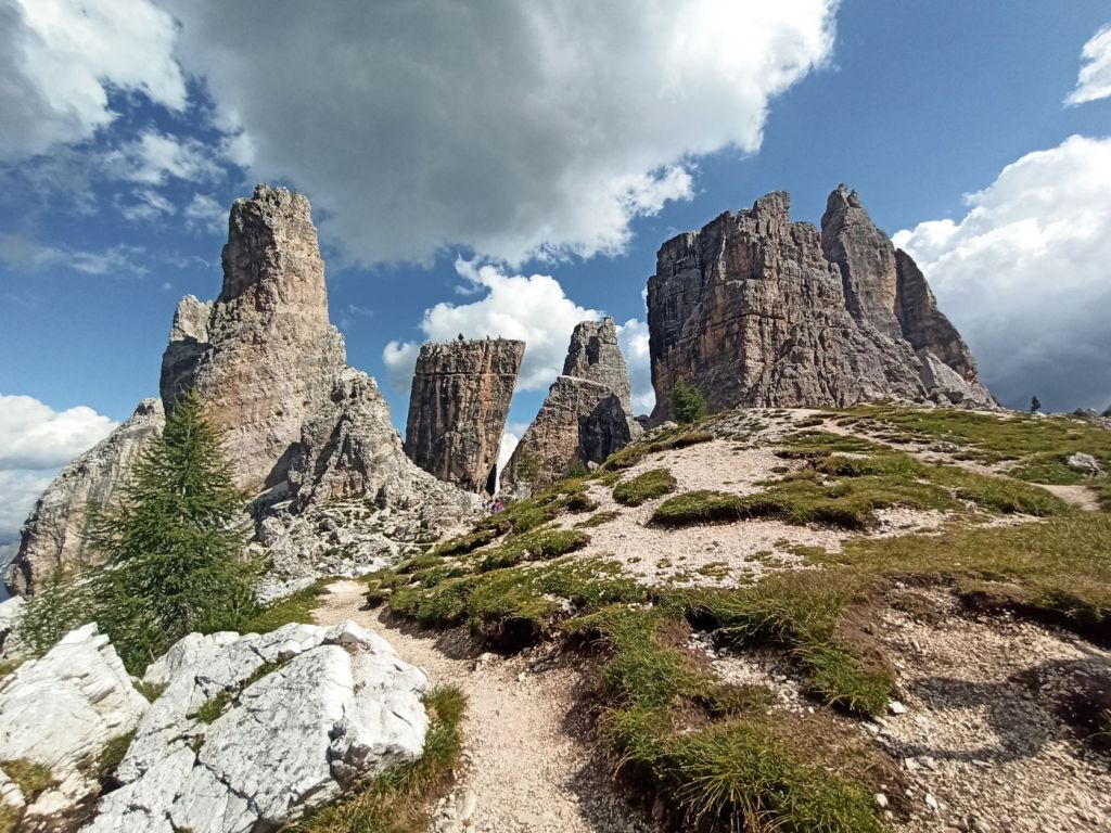 Meritata giornata di relax tra due trekking, in vero stile merenderos, partiamo con molta calma e ci dirigiamo verso la Seggiovia 5 Torri. Raggiungiamo comodamente i 2255 metri e arriviamo ai piedi delle 5 Torri e del Monte Nuvolau. Ci fermiamo per pranzo al Rifugio Scoiattoli, il rifugio ha una splendida terrazza panoramica che però va prenotata in alta stagione. Dopo pranzo decidiamo di riposarci al sole per un’oretta sui prati nei pressi del rifugio, godendoci la calma del posto, la vista e la fresca brezza di montagna.