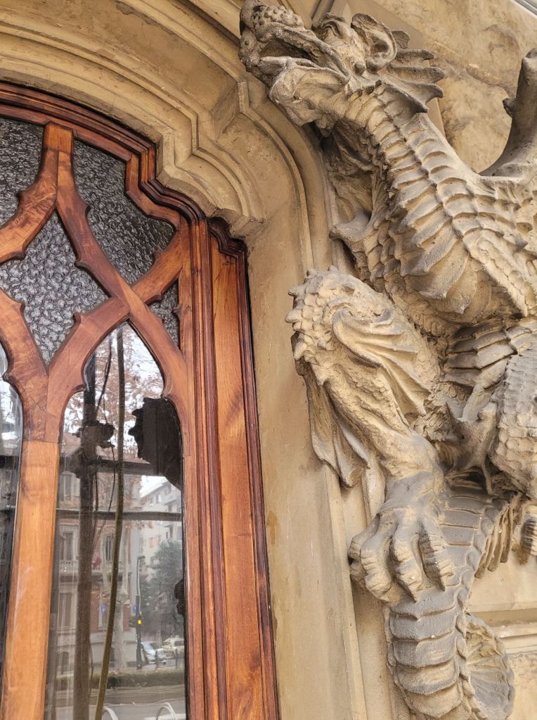 Casa della Vittoria, anche chiamata Casa dei Draghi. Perché? Eccola nel portale di ingresso la risposta