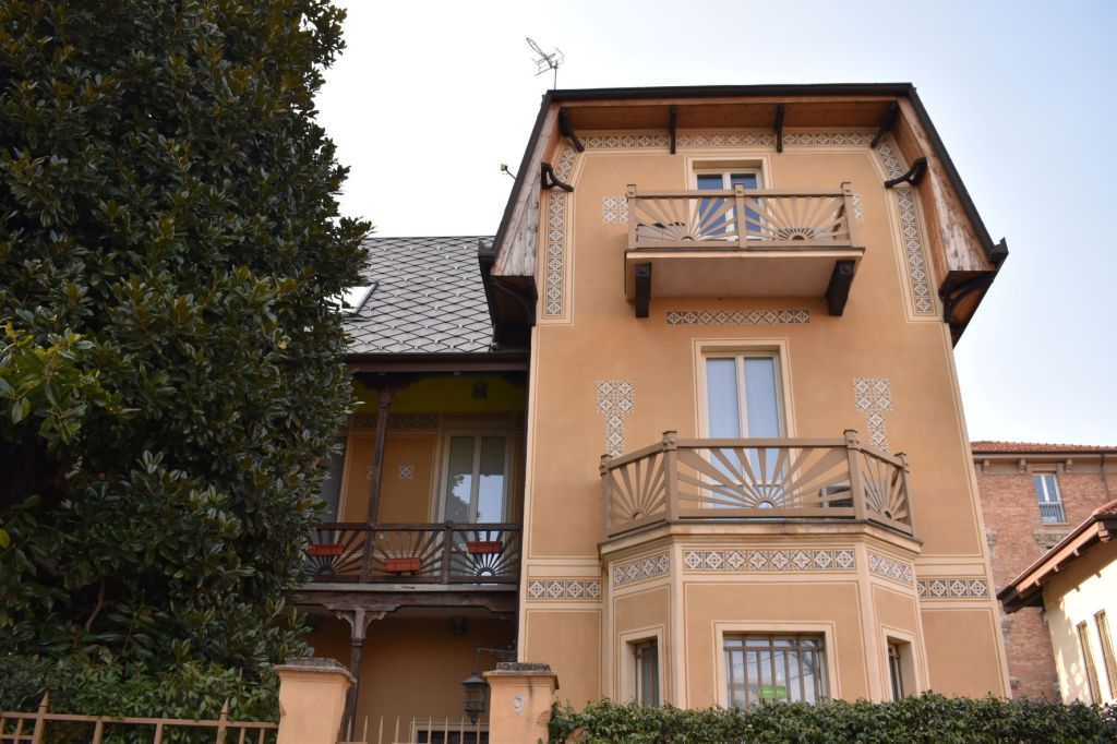 Ecco che lo stile liberty riesce ancora a stupire lo spettatore: la piccola villetta è caratterizzata da due corpi di fabbrica ortogonali e da un insieme vivace di materiali differenti, come il legno, l’intonaco, il mattone, la ceramica.