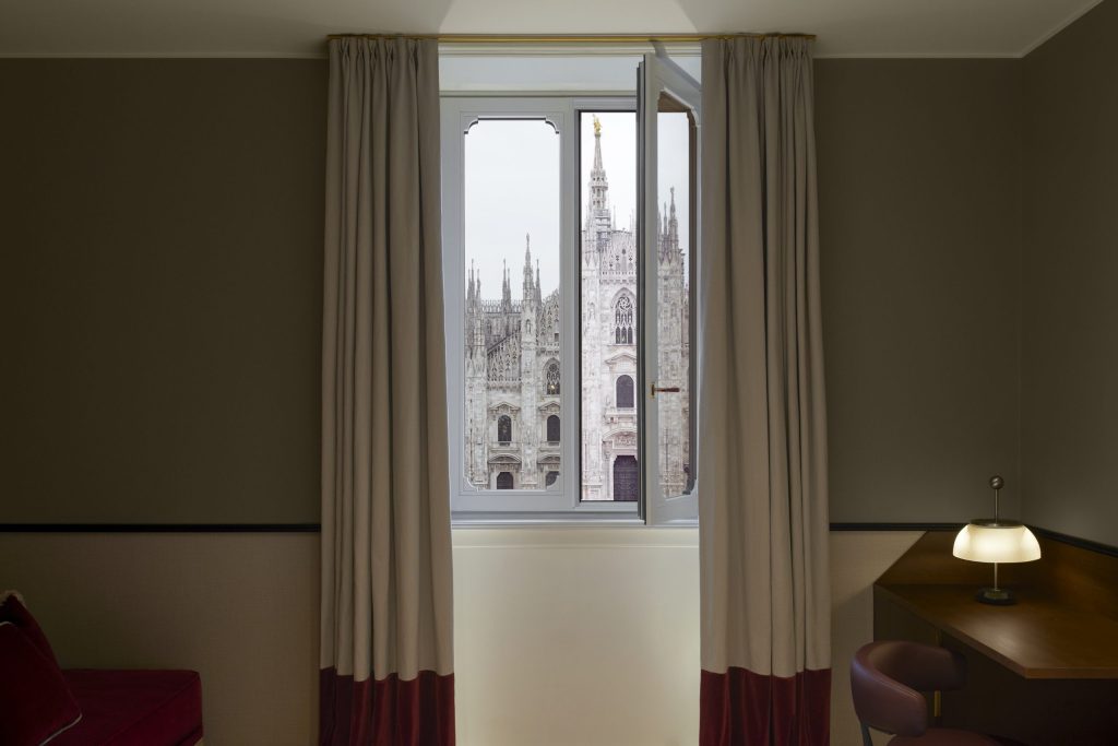 C’è la Suite Montenapoleone, ispirata alla via dello shopping e del lusso, che si distingue soprattutto per la scelta dei tessuti, c’è poi la Suite La Scala, un omaggio al celebre teatro milanese, uno scrigno di velluto bordeaux e splendida vista sul Duomo, che appare come uno spettacolo dietro le tende.