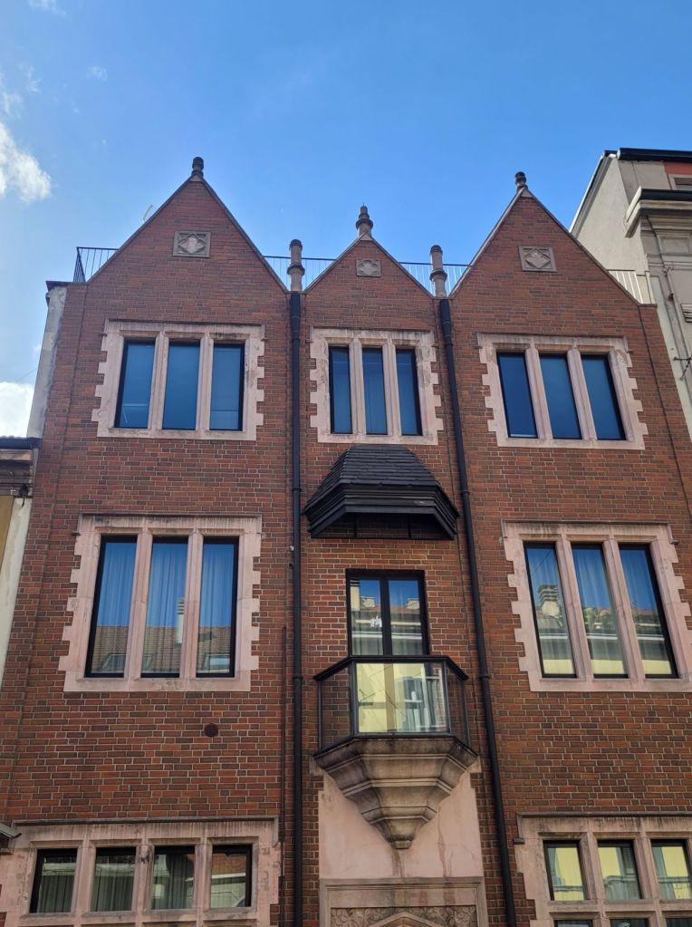 La facciata in mattoni è dominata da un grande balcone centrale e da bellissimi affreschi, con soprattutto figure zoomorfe. Durante il mio viaggio a Milano è stato un incontro inaspettato.
