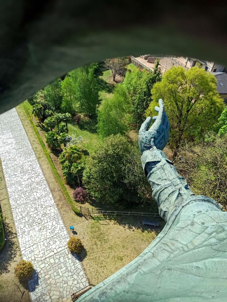Oggi è possibile salire all’interno della statua per ammirare l’incredibile vista sul lago direttamente da naso, occhi e orecchi del santo. Per raggiungere la cima bisogna salire 85 scalini, di cui 60 lungo una stretta scalinata a pioli, per chi soffre di vertigini o di claustrofobia è possibile fermarsi sulla terrazza dalla quale si gode di un’ottima visuale sul lago. Incluso nel biglietto c’è anche il parco che circonda la statua dove sono presenti tavoli da picnic. Personalmente sconsiglio la salita in cima nei mesi estivi per via del caldo.