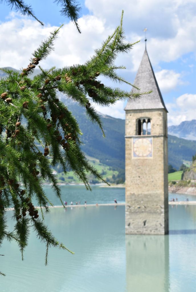 Il progetto della diga in Val Venosta avrebbe riguardato l’unione di tre laghi alpini, due laghi più a monte, per crearne uno unico, più grande. Il livello dell’acqua si sarebbe alzato di 22 metri andando, così, a sommergere completamente la storia, i ricordi, le case di quasi 150 famiglie. Tutte le case vennero fatte saltare in aria, ad eccezione del campanile romanico trecentesco, che venne risparmiato. Non c’è nessun borgo sommerso dalle acque quindi, anche se ammetto che sia molto affascinante da pensare.