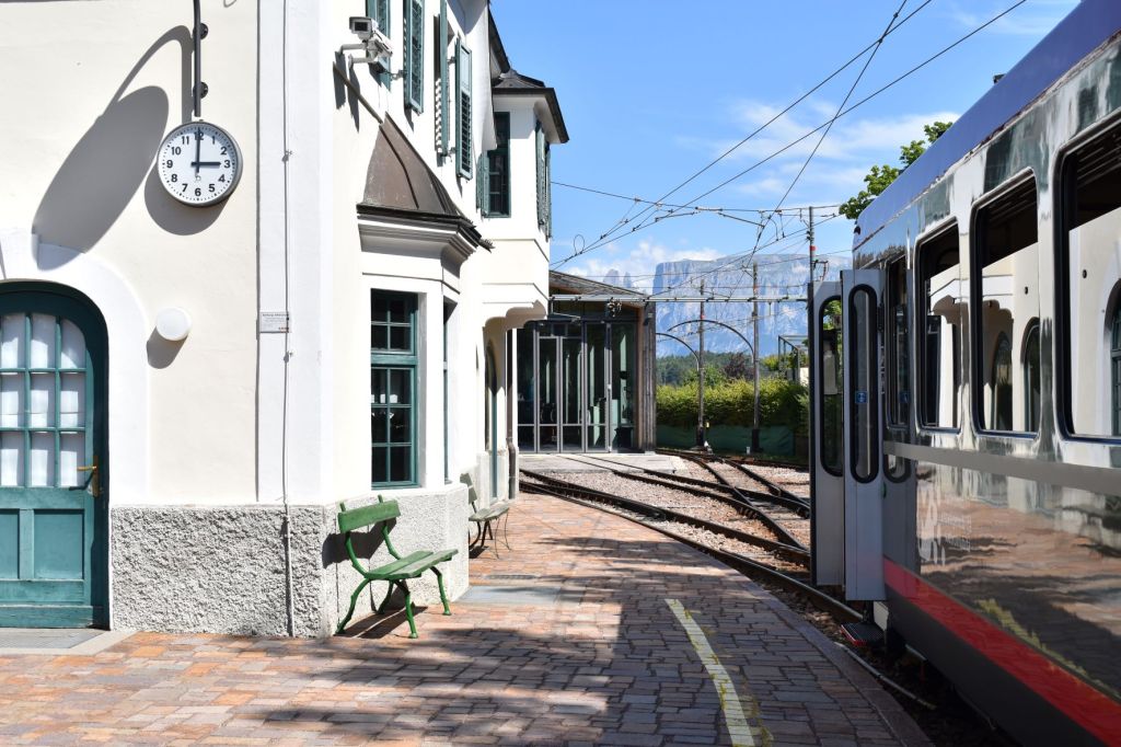 Noi invece decidiamo di fare un’esperienza diversa e da Collalbo arriviamo a Soprabolzano a bordo del divertente Trenino del Renon, il Rittner Bahnl, come viene chiamato il trenino in dialetto altoatesino. Dico divertente perché il Trenino del Renon è un trenino di montagna, che va pianissimo, costruito sul modello svizzero in voga ai tempi della Belle Époque e progettato proprio quando si decise di aprire le montagne ai turisti benestanti.