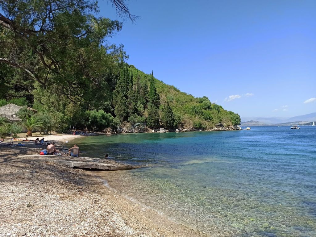 Nelle ore più calde ci spostiamo ad Est dell’isola, una volta raggiunta l’altra costa, percorriamo la strada costiera panoramica fino alla spiaggia di Houhulio. A mio parere un piccolo angolo di paradiso, la mia spiaggia del cuore sull’isola di Corfù. La baia dalle acque color smeraldo è circondata da alti pini, ulivi e eucalipti che profumano l’aria e che nel pomeriggio donano tantissima ombra naturale. La spiaggia ed il fondale non sono dei migliori, perché ricoperti di sassi, ma l’acqua, che diventa subito profonda, è meravigliosa. Sul fondo della spiaggia c’è un sentiero per Keralia, percorretelo per qualche minuto, e scoprirete una piccola baia paradisiaca, che molto probabilmente avrete tutta per voi.