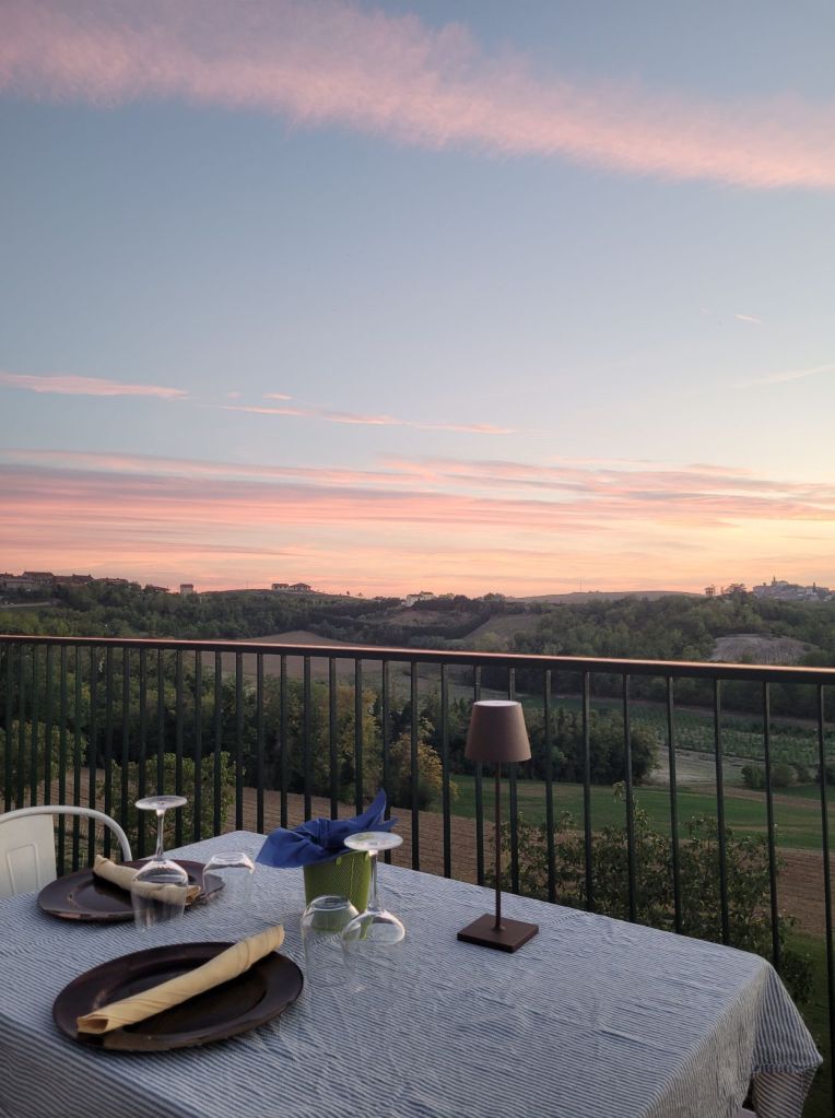 Anche il menù del ristorante mi ha stupito, con materie prime piemontesi ma un tocco di innovazione e un menù fisso dove la qualità e il costo erano più che giusti. Il paesaggio davanti ai nostri occhi, al tramonto, con tutto l’arco alpino che sfilava sotto i nostri occhi ha reso la cena, già ottima, anche scenograficamente impeccabile. Calici in mano con vini piemontesi di cantine poco distanti e il cielo davanti a noi che prima si tingeva di rosa e poi di color arancio.