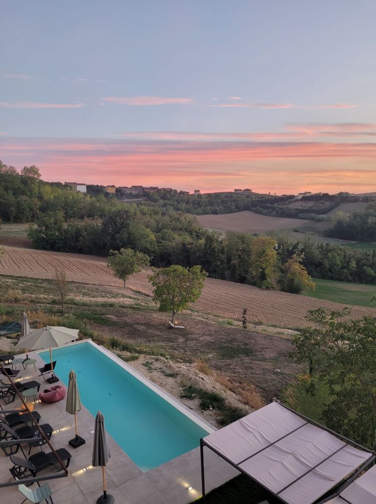 Tenuta San Rocco ha tantissime cose che amo in particolar modo di un luogo in cui soggiorno e che raramente ho trovato così ben equilibrate: ci sono ben due piscine che guardano il Monferrato, una a sfioro in cui è possibile brindare con uno spritz e una birra artigianale, un’altra circondata dai noccioli e dal verde, più appartata. La grande terrazza accogliente è perfetta per leggere un libro, godersi il tramonto, chiacchierare, stare intorno al fuoco nelle fresche serate settembrine.
