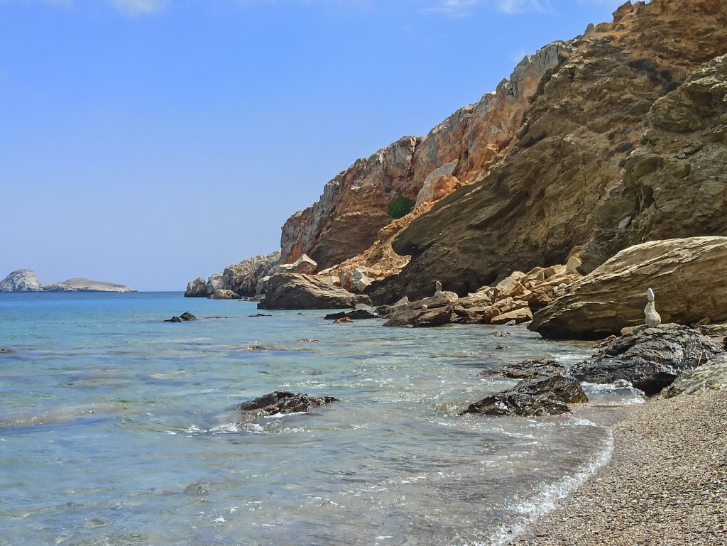 Le spiagge di Folegandros sono selvagge e non attrezzate, solo alcune hanno taverne e bar.