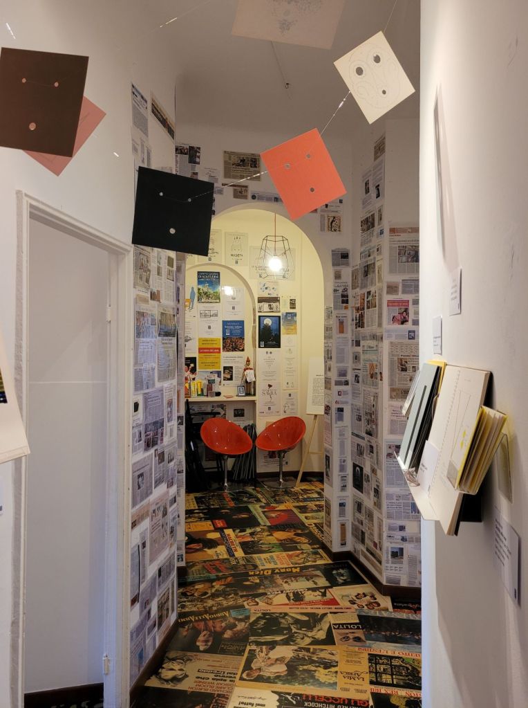 La Kasa dei Libri non è una biblioteca, non è una libreria, non è uno spazio museale ed espositivo, ma un luogo dove chiunque ami questi oggetti di carta è accolto a braccia aperte. Basta suonare il campanello kasa dei libri, incamminarsi a piedi lungo le scale o prendere l’ascensore e raggiungere le stanze in cui i libri, appoggiati su mensole, infilati in librerie, o che scendono addirittura dal soffitto, sono lì a disposizione di tutti. Chiunque può passeggiare liberamente tra gli scaffali e sfogliare i libri. Sono stata in occasione della Mostra Le copertine di Munari, visitabile fino al 23 Ottobre.