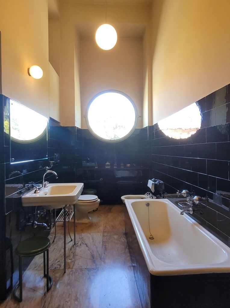 Il giardino è meraviglioso nella sua semplicità e accanto alla piscina è presente un bar caffetteria in cui ci si può fermare prima o dopo la visita. Oltre alla villa e alla piscina, erano presenti la casa del custode con la portineria, la serra, il garage, il campo da tennis, frutto di un gusto borghese colto e all’avanguardia.