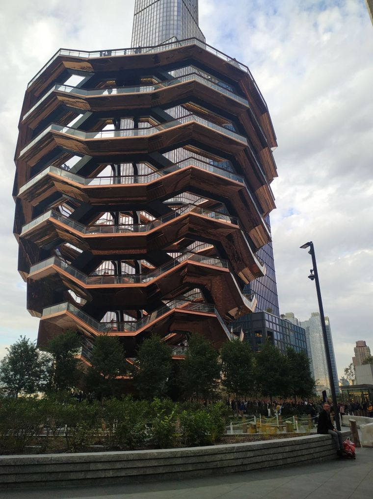 The Vessel si eleva per oltre 45 metri con 16 livelli dalla base, più stretta, fino all’ultimo piano, che via via si allarga. È composto da rampe di scale e pianerottoli da cui si poteva godere il panorama su New York. Si poteva, parlo al passato, perché dopo diversi suicidi, avvenuti nel 2020 a distanza di pochi mese, è stato chiuso al pubblico fino a data da destinarsi per motivi di sicurezza.
