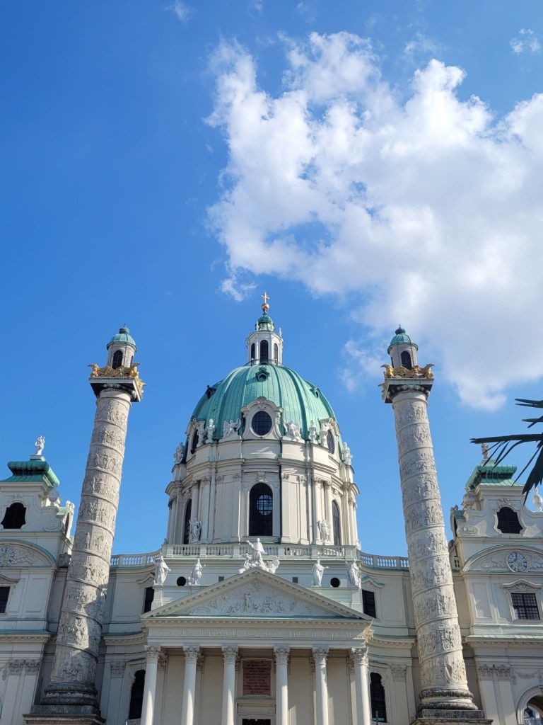 Pranzo a base di hot dog presi poco distante e relax sdraiati sull’erba del parco e poi ricominciamo a camminare verso la bellissima Karlskirche, una delle più belle chiese barocche della città, con un’imponente cupola dalla forma ellittica, molto suggestiva anche la notte.