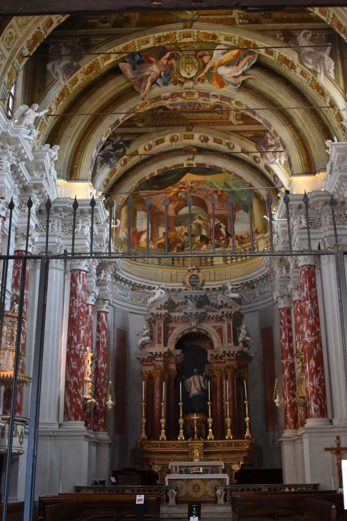 La decorazione pittorica è opera del gesuita Andrea Pozzo, pittore prospettico tra i più apprezzati del periodo barocco. La decorazione pittorica di Andrea Pozzo ha trasformato l’intera superficie della copertura, che architettonicamente è piatta, in un coloratissimo repertorio di elementi decorativi e finte architetture come quella della cupola centrale, resa con la tecnica del trompe-l’oeil. Grazie a INFINITUM, attraverso un percorso multimediale e immersivo è possibile immergersi negli affreschi di Andrea Pozzo grazie ai visori in 3D e disegnare nello spazio attraverso un pennello virtuale.