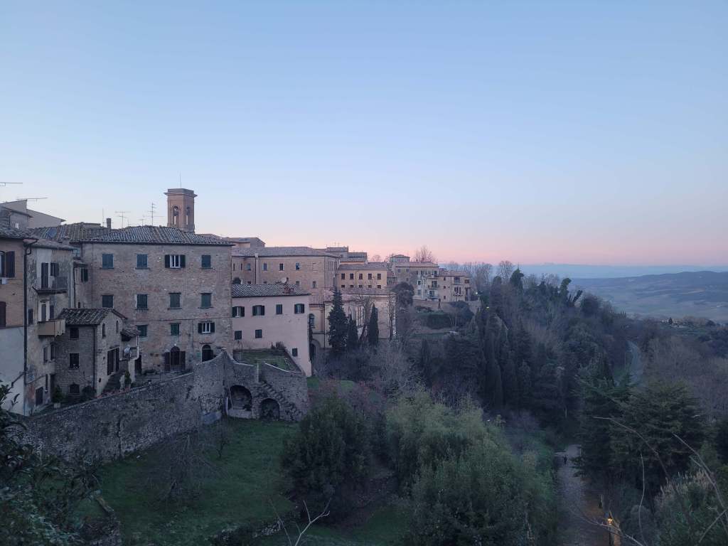Siamo in provincia di Pisa, nella bellissima Val di Cecina e il borgo è completamente circondato di paesaggi collinari belli da togliere il fiato. Le origini di Volterra sono etrusche, il borgo è in posizione collinare e sopraelevata rispetto al resto del paesaggio circostante: in questo è già presente parecchio del suo fascino. Affacciandovi da Volterra potrete vedere il mare e godere il tramonto sull’isola di Capraia, nell’Arcipelago Toscano, e sulla Corsica. Nelle giornate particolarmente limpide, anche invernali, il cielo si scalda di colori caldi all’ora del tramonto e il mare sembra a pochi passi da voi – in auto è meno di un’ora di tragitto infatti.