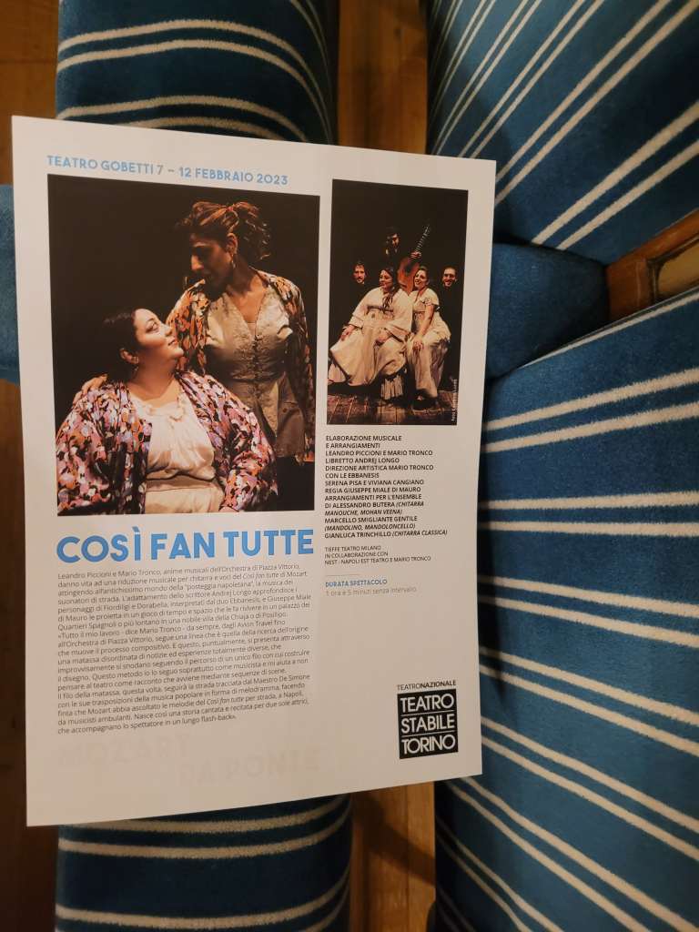 Così fan tutte è un’opera lirica in due atti di Wolfgang Amadeus Mozart che non avevo mai visto a teatro e mi ha spiazzato, per la sua bellezza e anche per la bravura delle interpreti. Con musica dal vivo e cambi di abito divertenti, da vedere anche se non siete esperti di lirica.
