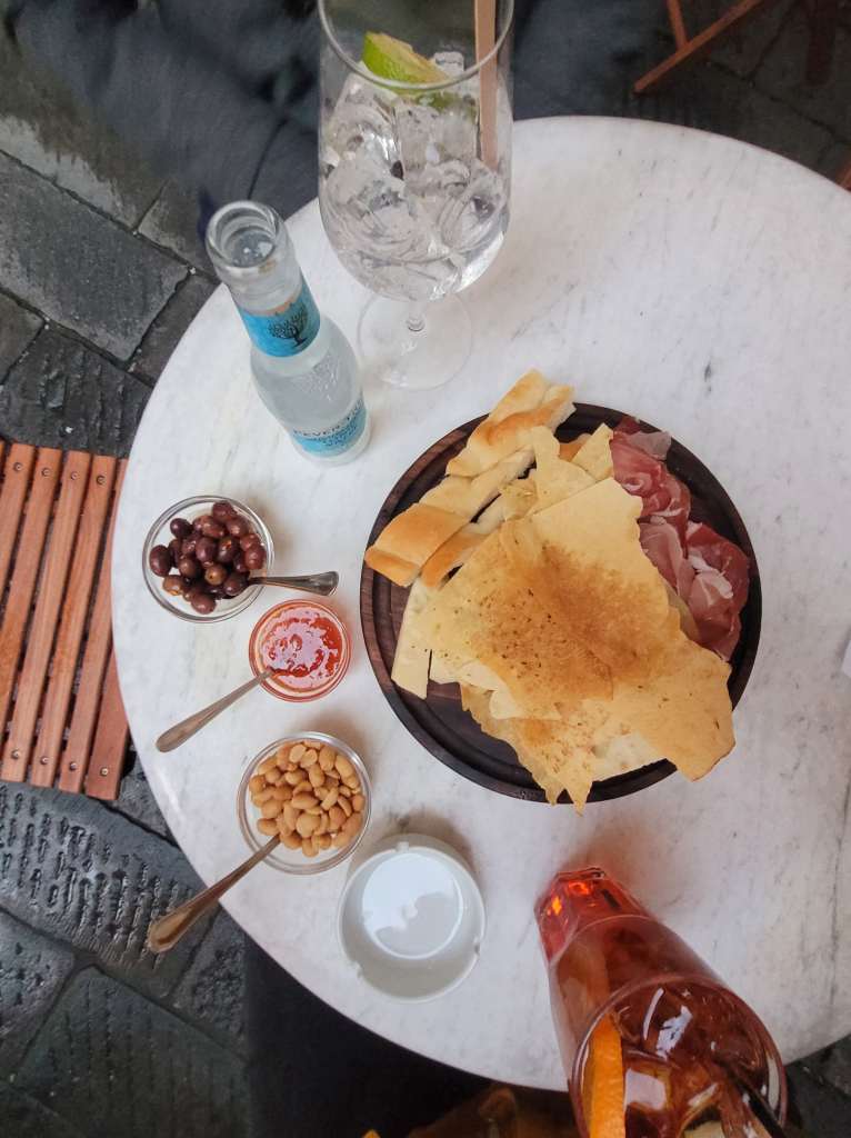 Lo spritz al chinotto è ottimo e se non qui, nella patria del chinotto, dove volete assaggiarlo? Vi segnalo anche una fornitissima selezione di gin e lo spritz allo zenzero e alla violetta, per chi vuole sperimentare.