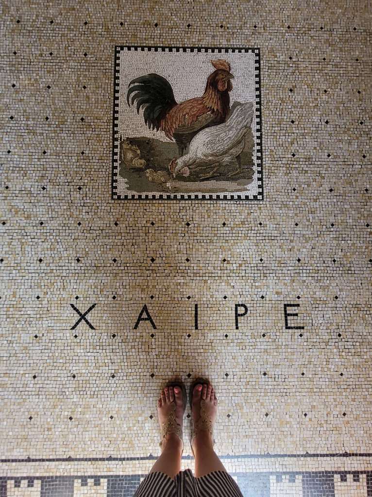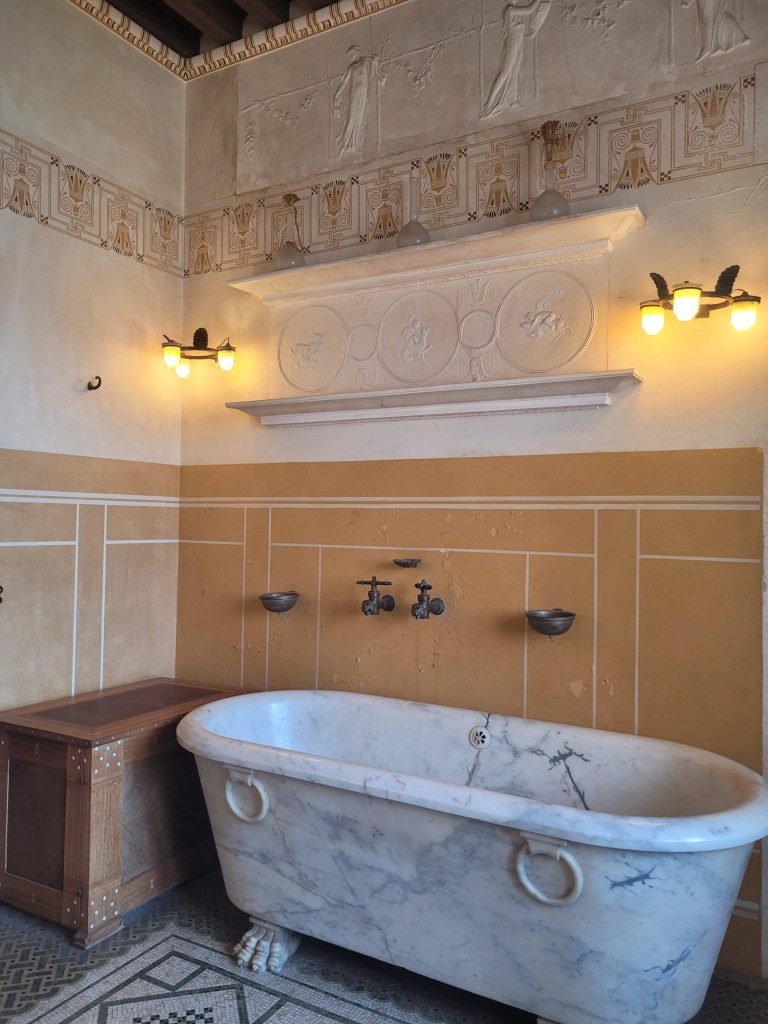 Tutta la villa è un tripudio di classicità: pavimenti di marmo e mosaici particolareggiati, sale da bagno incantevoli con vasche che pesano circa una tonnellata, camere da letto essenziali ma dove nulla è lasciato al caso, arredamento ispirato all’antichità classica.