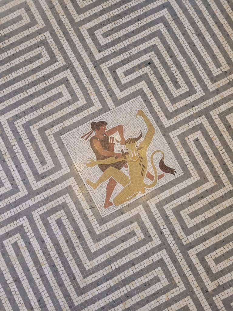 La costruzione di Villa Kérylos è ispirata alle abitazioni rinvenute a fine Ottocento nell’isola di Delo, e tutto al suo esterno e al suo interno evoca un’idea elegante e sfarzosa di antico.