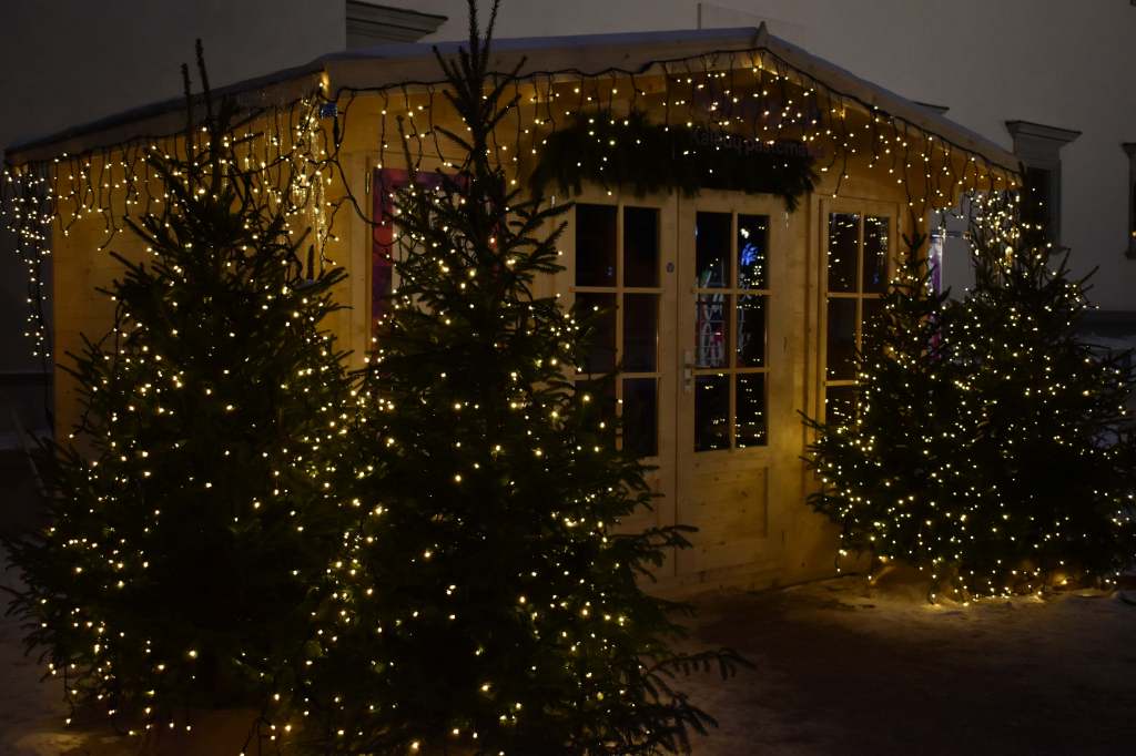 Una delle tappe da non perdere è senza dubbio la piazza della Cattedrale, dove un grande abete natalizio sempre diverso viene allestito e circondato da una cinquantina di piccole bancarelle in legno di colore bianco che vendono prodotti enogastronomici e artigianali locali.