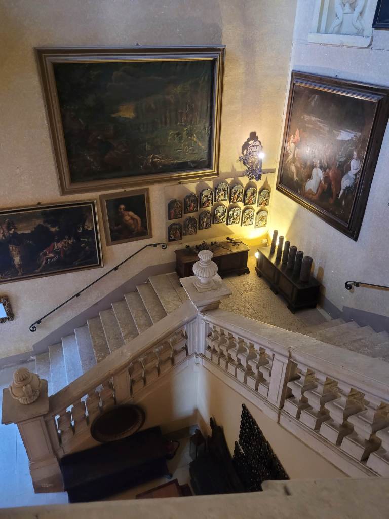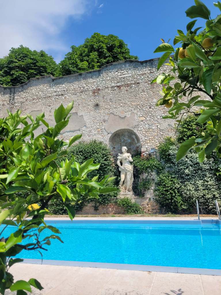 Sulla sinistra dei giardini è presente un’elegante piscina e una grotta che funge da ampia serra e giardino di inverno per la rimessa delle piante di limone. Sarà che io adoro sempre questi luoghi, ma questi luoghi misteriosi e un po’ segreti delle dimore, li trovo davvero imperdibili.