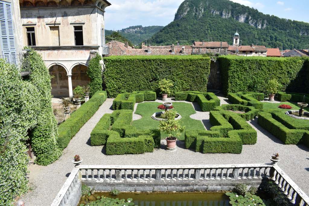 La villa è a forma di U e sui suoi lati lunghi si apre un perfetto giardino all’italiana, scavato da nicchie e fiancheggiato da due peschiere. Il muro arriva all’altezza del primo piano della villa, così che il giardino si trova ad essere inglobato nella costruzione, tanto da sembrare anch’esso parte delle stanze: un grandioso salone ricevimenti a cielo aperto, arredato con sculture, fioriere e fontane, dove la bellezza del verde e il suono dell’acqua vi porteranno subito su nuvole leggere. Via via sono presenti più terrazze con giardini all’italiana, che il visitatore scopre piano piano salendo scale e scalinate.