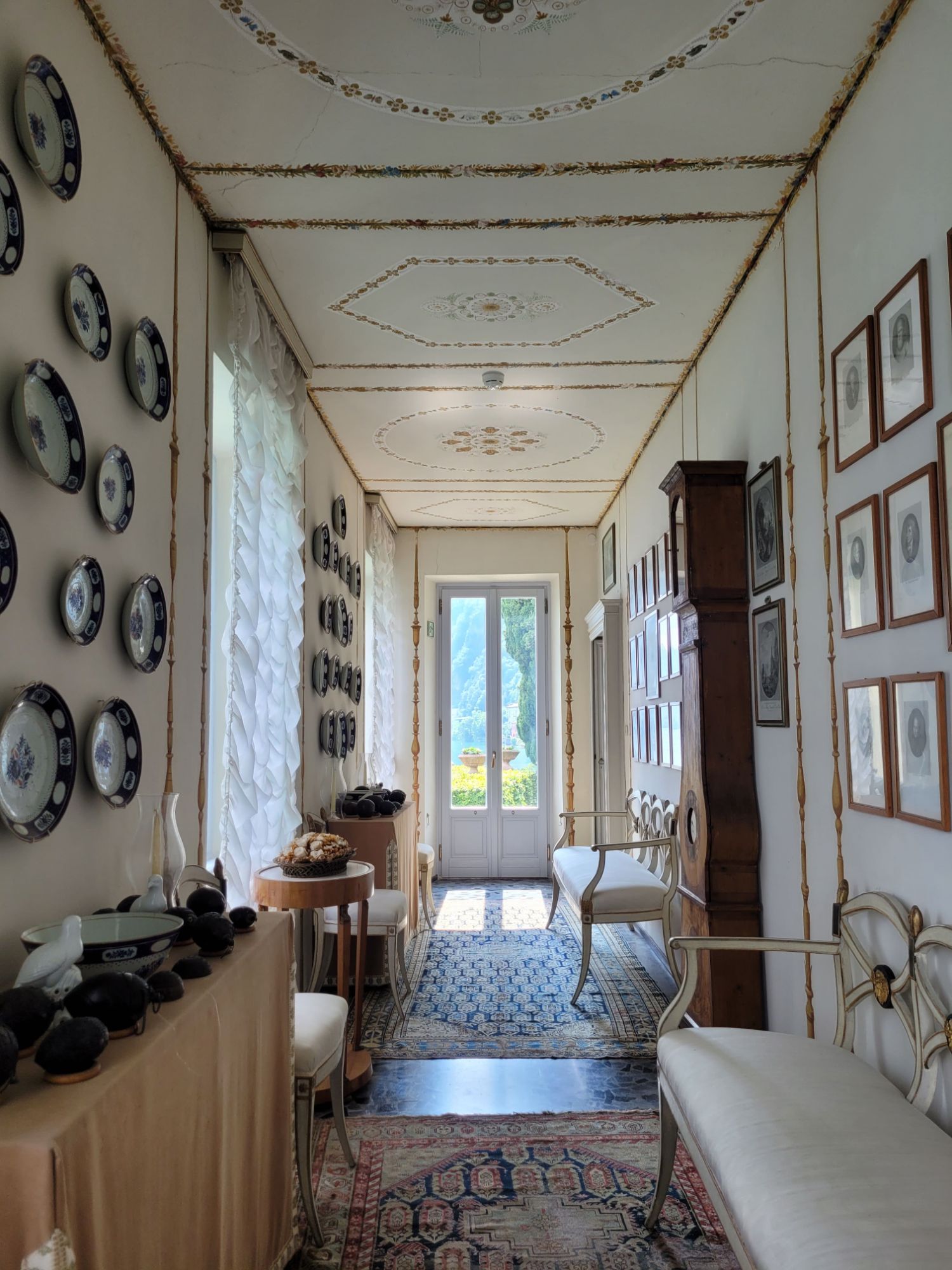 La visita inizia proprio dal cortile esterno della villa e una volta percorse le scale che sembrano ancora abitate dai loro proprietari, si raggiunge un corridoio con attaccapanni e vestiario che doveva servire nei momenti di pioggia improvvisi che imperversavano fulminei sul lago.
