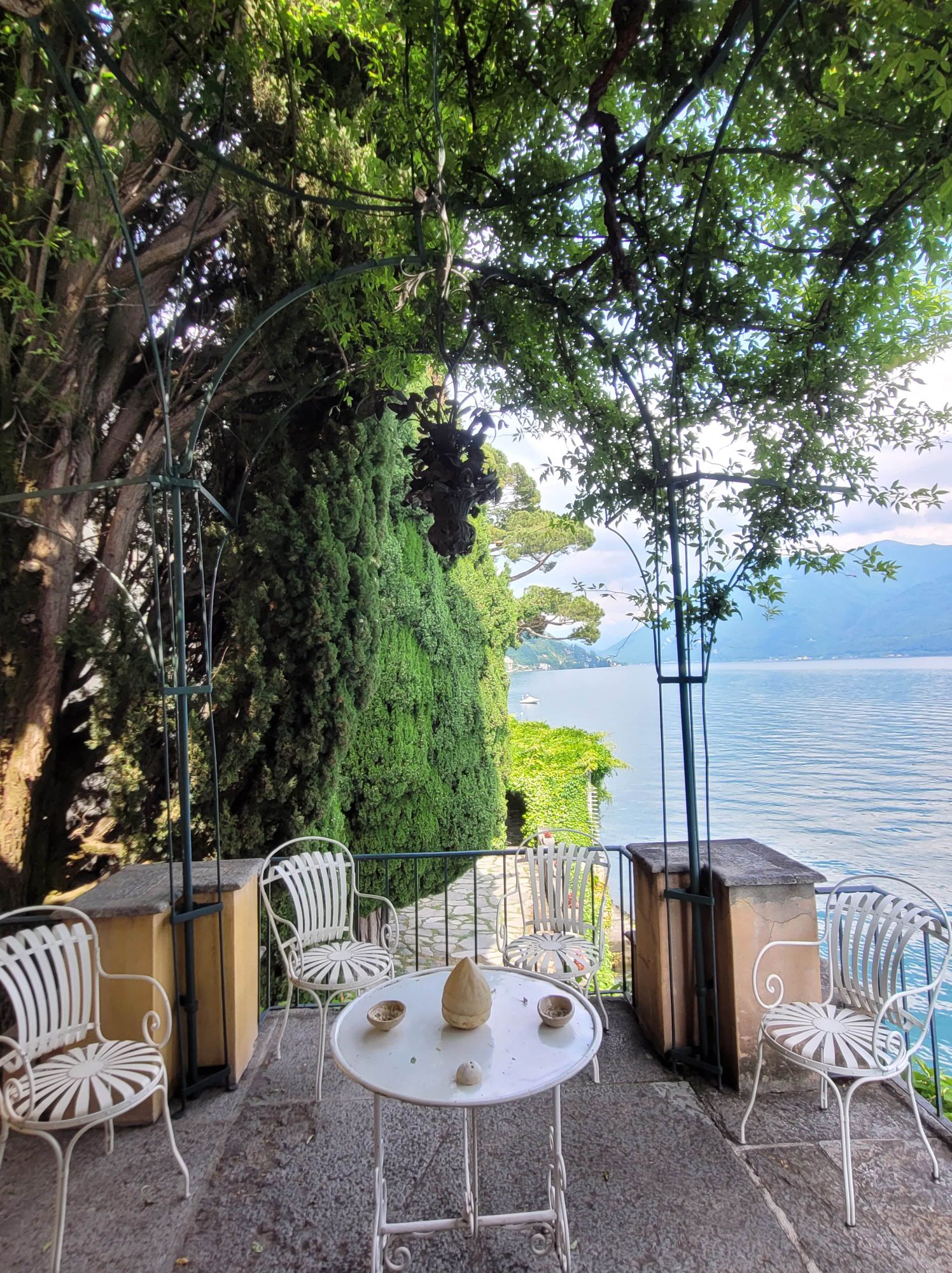 Uno dei luoghi della casa più amati è il terrazzino delle contemplazioni filosofiche: sospeso sul lago tanto che sembra di trovarsi al suo interno, è sormontato da una cupola in ferro battuto.