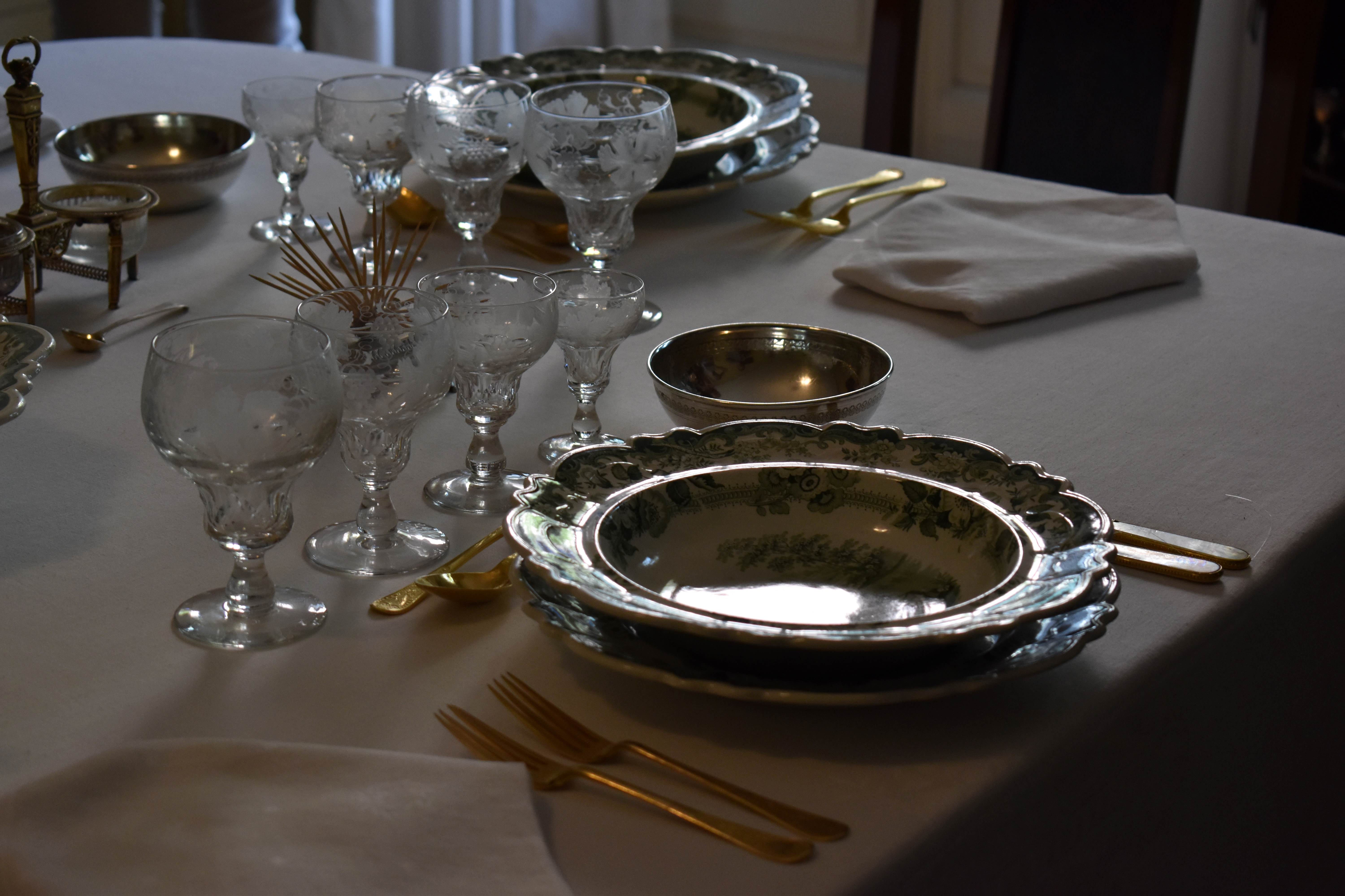 Si visita poi il Salone Siberia, chiamato così perché è sempre stato la stanza più fredda della casa, lo studio di Antonio Fogazzaro, con il suo scrittoio originale, la sua camera da letto, ma anche la sala da pranzo, dove vari servizi vengono alternati per rispettare le volontà testamentarie. Tutto è apparecchiato utilizzando il metro e le misure richieste, come ad esempio la distanza precisissima tra un commensale e l’altro, per non urtarsi a vicenda.