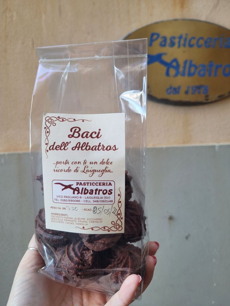 Siamo stati in spiaggia, a guardare il mare da una panchina e poi ne abbiamo approfittato per tornare in un posto dove non andavamo da un po’, che è anche tra i borghi più belli di Italia, a Laigueglia, uno dei borghi più belli di Savona, con un centro storico delizioso e affacciato sul mare. Se volete portare a casa con voi un sacchetto degli iconici baci di Laigueglia, cosa che vi consiglio senza dubbio, l’indirizzo da segnare è la Pasticceria Albatros.