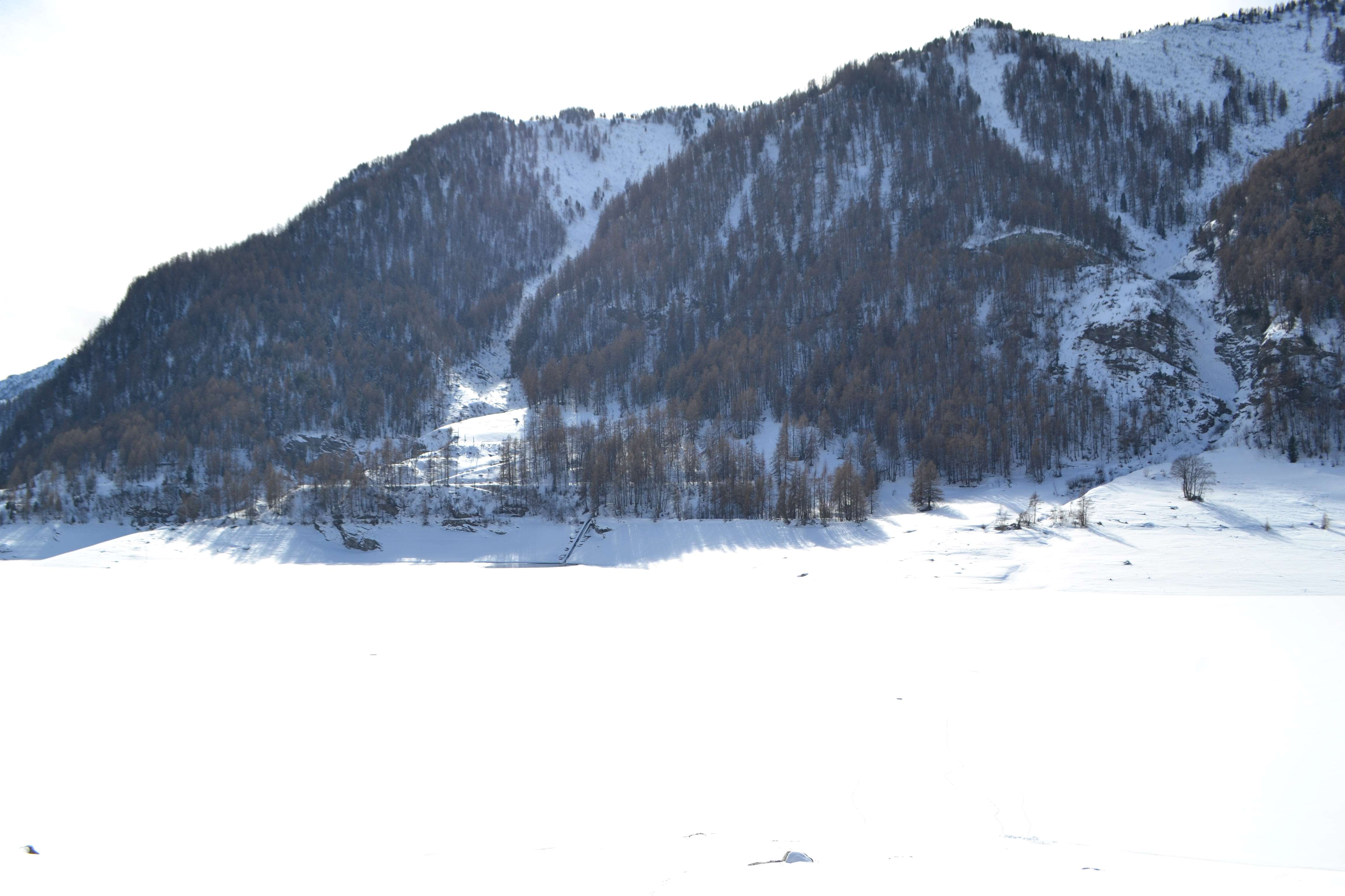 Il lago di Pontechianale è suggestivo in inverno, ricoperto da una coltre di neve e gelo così come in estate, circondato da un paesaggio verdissimo e lussureggiante.