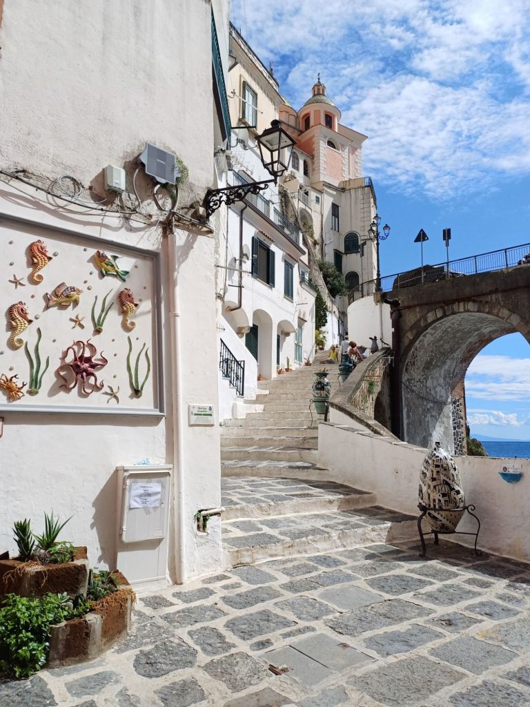 La bianchissima Atrani, per me mozzafiato! Da raggiungere rigorosamente a piedi da Amalfi seguendo il dedalo di scalinate che si inerpica su per il borgo.