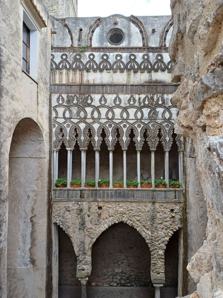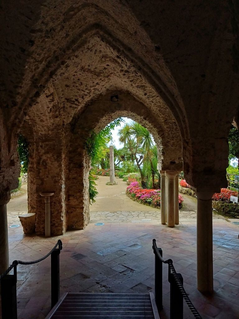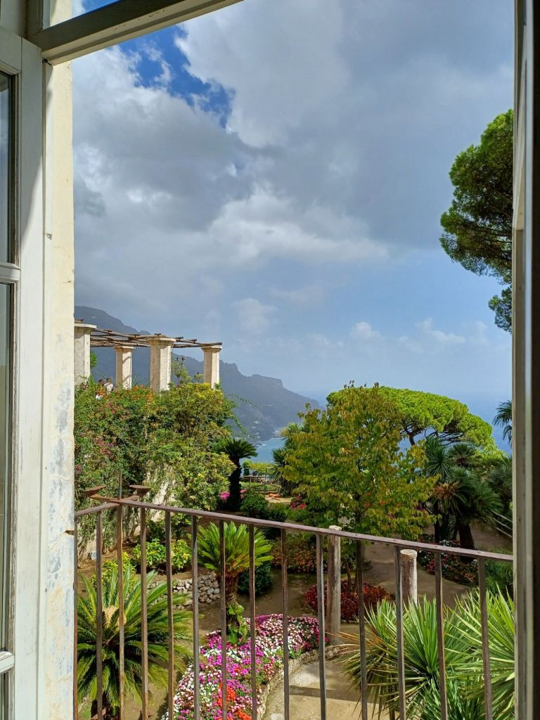 Decidiamo poi di visitare il Duomo di Ravello, che ci salva da un’improvvisa pioggia dirompente. Quando il temporale sembra passato ci inoltriamo nel Giardino del Vescovo, che regala alcuni scorci interessanti su Villa Rufolo e sul Duomo, ci spostiamo nel giardino del Comune e poi giungiamo ai Giardini Principessa di Piemonte che regala una meravigliosa vista sulla costa.
