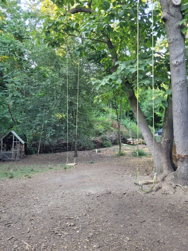 Si può tenere e coltivare un orto, ci si può rilassare su un’amaca o su una sdraio, i bambini e gli adulti possono fare corsi e laboratori, e si può mangiare al chiosco, in un edificio riqualificato dove servono cibi semplici e genuini – buonissimo il succo alla mela!