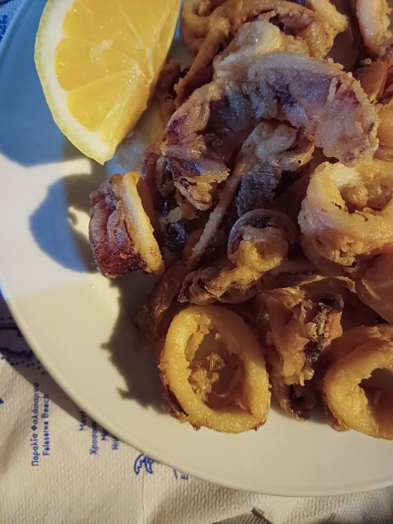 La sera, dopo aver ammirato uno splendido tramonto sul mare dal nostro piccolo terrazzo, decidiamo di cenare alla Taverna Irene, a pochi passi dal nostro alloggio. Ci gustiamo delle buonissime polpette di zucchine e degli ottimi calamari fritti.