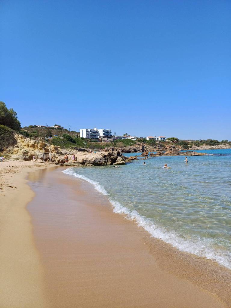 Rientriamo all’appartamento e, dopo colazione, optiamo per un’altra spiaggia non lontana: Kalatha Beach. Una bella baia dalla sabbia dorata, dall’acqua turchese e il fondale basso, che si affaccia su uno splendido isolotto facilmente raggiungibile a nuoto. Noleggiamo due letti ed un ombrellone per 15€ e trascorriamo lentamente la giornata, tra l’ascolto di un audiolibro e interminabili bagni nella baia.